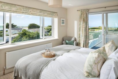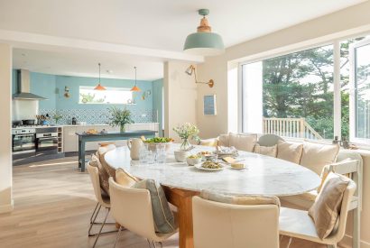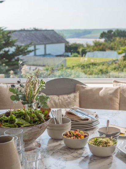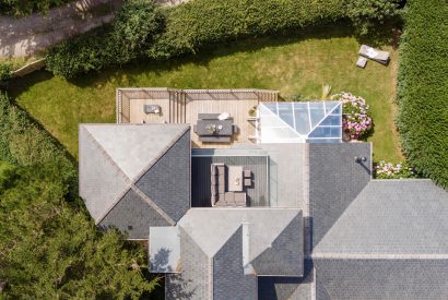 Inside, sprawling social spaces provide plenty of space for the whole family to spread out and make themselves at home. The light and vibrant kitchen has all you could possibly need for enjoying holiday feasts. Settle down and indulge in a lazy breakfast at the oval dining table and enjoy views across the estuary as you dine together. In summer, throw open the glass doors to the sun-soaked terrace and let the fresh sea air flow in.