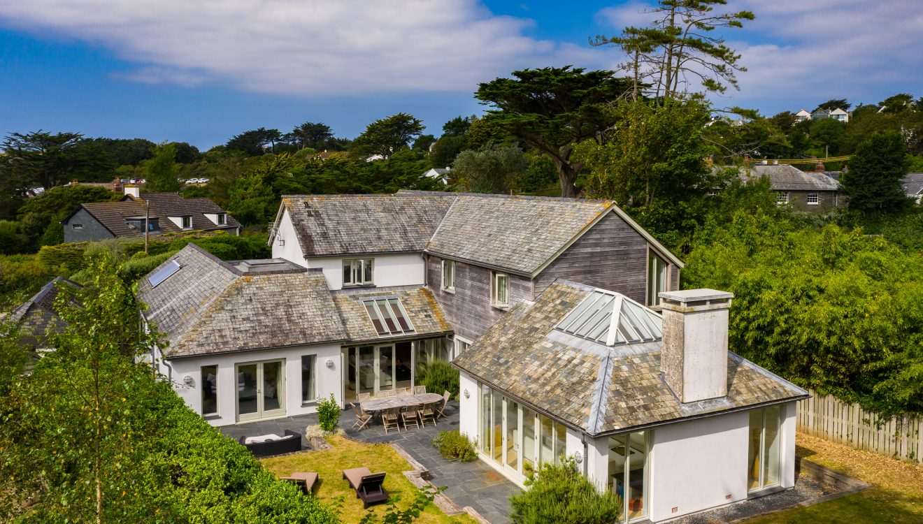 Church Lane house is hidden away on a small track at the bottom of Daymer Lane, just a three-minute walk to beautiful Daymer Bay Beach. Here, a tree-lined footpath leads over a trickling stream onto the undulating fairways of the St Enodoc Golf Course with paths to St Enodoc Church (where this luxurious home coined its name) or the beach. This position, just back from the beach, offers privacy and tranquillity combined with total convenience.
