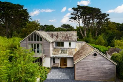 To the back of Church Lane House, a soft lawn encased by railways sleepers and bordered with beds spilling with fragrant rosemary, stretches out to a thick green hedgerow dotted with mature evergreens. Pad across the chunky slate flagstones, warmed by the Cornish sunshine and sink into the sun loungers for some true rest and relaxation. To the front, a circular wooden table framed by twisted vines, provides a sheltered spot for an evening barbecue.