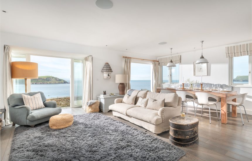 Enter to a calming coastal oasis of fresh white walls and an abundance of natural daylight. The beauty of the luxurious open plan social spaces is only exceeded by the panoramic views of the wild coastline, stretching from Stepper Point to Pentire Head. Throw open the doors to the garden and drink in the view, uninterrupted as the expansive lawn melts into blue hues of the Atlantic Ocean.