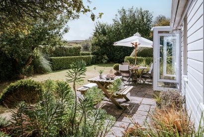 The large open-plan lounge and dining area is centred around a log burner; the ideal place to warm up after a day exploring the coastal paths. The windows and full-length glass doors allow plenty of natural daylight to flow in, and from the lounge you can open up the doors to the patio and gardens.
