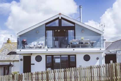 Through the double glass doors you'll find a spacious balcony. Here you can gather round the large wooden table for family breakfasts with a view or recline on the deckchairs and soak up the Cornish sunshine. Enjoy al-fresco dining with a magnificent ocean backdrop and watch the sun go down with a cold glass in hand.