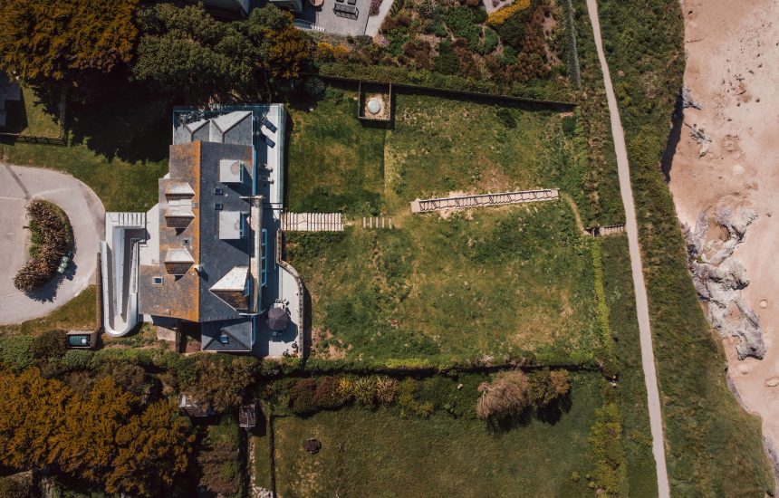 An expansive lawn dotted with bluebells in the spring stretches down from the house to a Cornish stone wall. Here, a wooden gate opens onto the South West coast path which winds down to the beach. Wooden steps lead down the centre of the garden, making it easy to come and go. A large sun deck wraps around the front of the house, providing the perfect spot for al fresco dining.