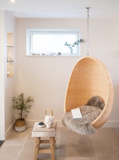 Fresh interiors combine with lavishes of luxury to create a fantastic holiday backdrop. After a day exploring the soaring heights of the South West Coast Path, return home and sink into the plush velvet sofa or swing yourself to sleep in the sheepskin-lined egg chair. A contemporary log burner provides a place to warm toes post surf.