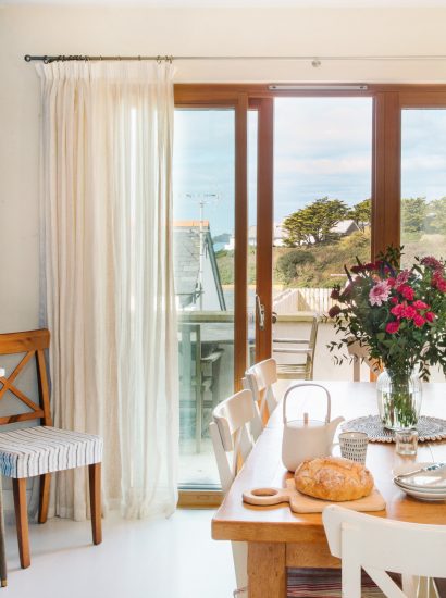 Three colourful bedrooms, each with zip and link beds, provide flexible accommodation for your party. After days of wave riding and sand-castle building, tumble into the fresh white linens and fall asleep to the sound of the ocean. At Gwel an Mor you will create family memories to last a lifetime, together on the sand.