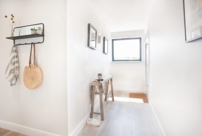 Inside, this light-filled abode exudes a calm and cosy atmosphere drawing inspiration from the coastal landscape. Beach house meets Scandinavian style with the carefully chosen interior flourishes. The dreamy colour palette of the open plan living space combines fresh white panelling with dusky greys, pinks and soft blues.