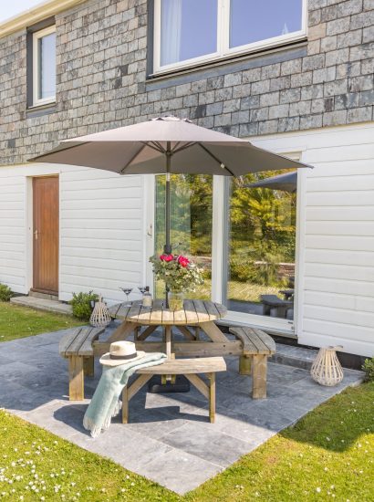 The communal gardens made up from front and back lawns as well as a small field, provide space for sunbathing and garden games. With ample parking in the adjacent field, you can come and go with ease from Polzeath Court.