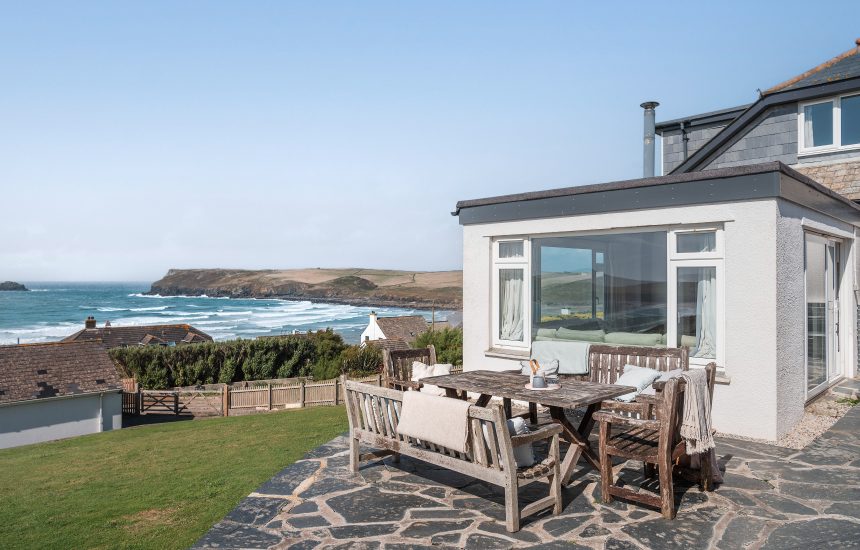 The lounge has a vast sofa, providing plenty of space to relax and unwind after a day on the beach. Dual aspect windows allow plenty of natural daylight to flood in, and the views from here – stretching from Polzeath to Stepper Point – are second to none. On a sunny day you can enjoy an idyllic outlook of sea, sand and lush countryside. When it's stormy, you can listen to the waves crashing against the cliffs while logs crackle on the fire.