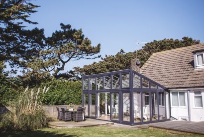 Nestled alongside the towering trees that give Pinetree Lodge its name, this exceptional dwelling can be found down its very own private lane in New Polzeath. The property has direct access to Baby Bay and headland walks via a 200m woodland footpath that you can access from the garden.