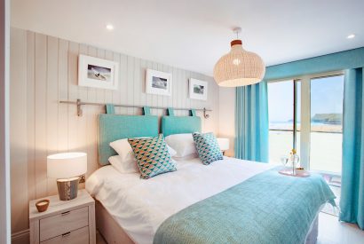 - Bedroom two has a super-king zip and link bed, wardrobe, dressing table, TV, hair dryer, balcony, sea views and an en-suite with shower, double sinks and WC.