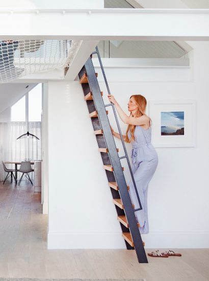 Enter into the gated parking area where a surf-inspired mural adorns the wall. Here you will find secure board storage and outdoor heated showers. On the ground floor of Polsted you will find a spacious entrance hall, utility room for holiday washing and a stylish ground floor bedroom with en-suite shower room. You will also find a sauna, perfect for getting toasty after a morning surf session.