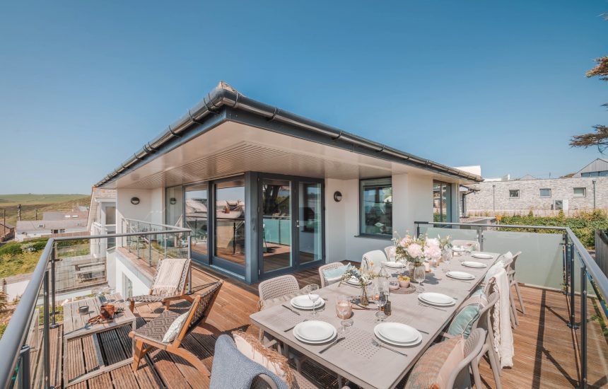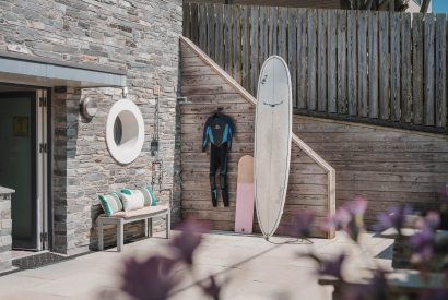 To the back of the house is an enclosed courtyard with a subtle combination of wooden decking and natural paving stones. Here you will find beautiful raised flower beds, a built-in barbecue, sun loungers and a heated outdoor shower. The courtyard is a sun trap, meaning you can enjoy soaking up the Cornish sunshine with fantastic home comforts.