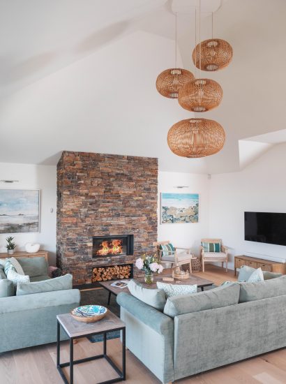 The property’s nautically inspired interiors and relaxing coastal tones flow seamlessly from room to room. A beautiful blend of wooden and stone floors, textured rugs and glass balustrades creates an understated environment for rest and relaxation. Built to a high specification, you can enjoy underfloor heating, an open fireplace, dedicated wet room and outside heated shower.