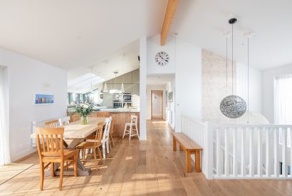 Downstairs, the bedrooms continue the theme of tranquillity and comfort, all with crisp linens and homely nods. For children, the bunk room adds an element of adventure, with the daily choice of top or bottom bunk. The snug room, filled with toys and a TV, provides the perfect retreat for younger guests to unwind after a day of exploration.