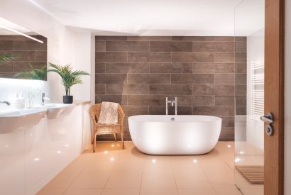 - Ground floor family bathroom with freestanding bath, rainfall shower, double basin and WC.