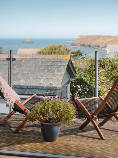 Upstairs, the open-plan living areas take full advantage of the wonderful views out to Pentire Head, with bi-fold doors that open onto a wraparound balcony. Here, the rhythm of the waves and the salty breeze greet you, whether you’re relaxing with your morning coffee or enjoying an evening sunset.