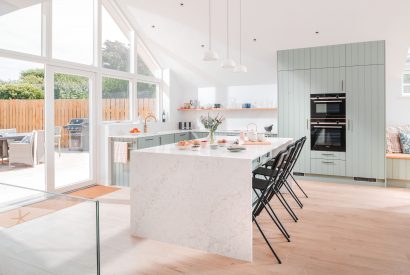 As eyelids grow heavy, four restful bedrooms are spread across both floors, with a gentle coastal palette of warm woods, soft linen and sea-glass blues and greens. Two doubles and two twins offer flexibility for families or friends, while the indulgent freestanding tub in the family bathroom promises long, luxurious soaks after days in the salt air.
