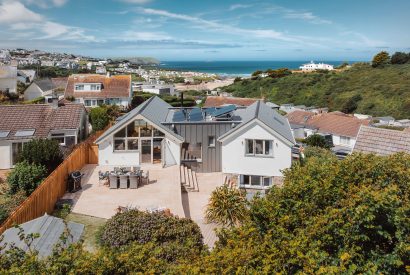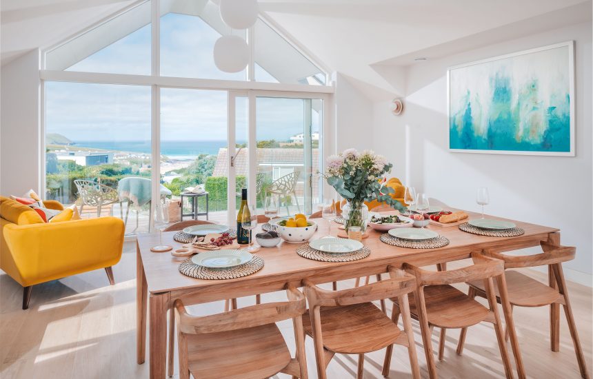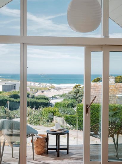 Set across two spacious levels, The Retreat embraces upside-down living to make the most of its elevated setting. Upstairs, a vaulted kitchen and dining space opens onto a balcony, where views stretch out to Gulland Rock and beyond. The adjoining living room is made for slow evenings. Think soft throws, a glowing log-burner and beautiful vistas from Stepper Point to the Atlantic horizon.