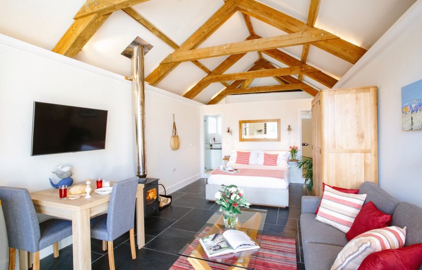 This small but perfectly formed studio offers everything a couple or solo traveller would need for a memorable North Cornish adventure. A crackling log burner and access to the heated swimming pool and hot tub combine to create a luxurious base to come home to after a day on the sand and in the surf.