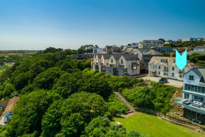From Trelawny you can pad down the flight of wooden steps that wind down to the shared soft green lawn complete with fragrant Buddleia, picnic benches and resident wild rabbits. Here you can while away sunny afternoons with a good book or indulge in some garden games. A rustic wooded path leads from here down to the bottom of the valley where you can hop across the road to the beach.