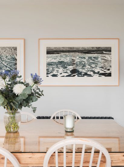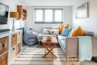 Step inside and feel an instant sense of calm. The warm grey walls, echoing the hues of a moody Cornish sky, set the scene for effortless coastal living. Grey wooden floors flow underfoot, punctuated by pops of ocean blue that bring the outside in.