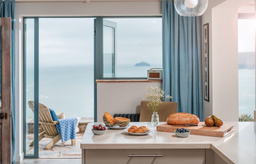 Every detail within Treviles marries sleek modernity with a rustic charm, where stylish grey cabinetry, thoughtfully chosen furnishings and artful additions of blue pottery create an ambiance that is both refined and relaxed. Whether it’s an intimate dinner overlooking the crashing waves or a quiet moment spent in the cosy snug, every corner of the home is designed to reflect the timeless rhythm of the coast.