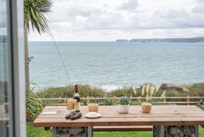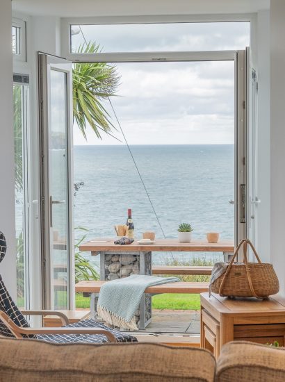 Nestled on the ground floor of this majestic Edwardian townhouse, Dew (two in Cornish), boasts stylish interiors, wooden floors and panoramic sea views. With nothing standing between you and the ocean, the sea view encompasses the rugged rock formations at Port Gaverne, all the way across to headland at Tintagel.