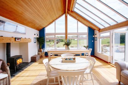 When weary legs need resting after a day of coastal adventures, choose from the cosy snug or spacious living room. With calming coastal tones, plush blue sofas and a crackling log burner, the living room provides the ultimate space for family games, movie nights and general rest and relaxation. With a large TV also allocated in the snug, there will be no arguing over the remote!