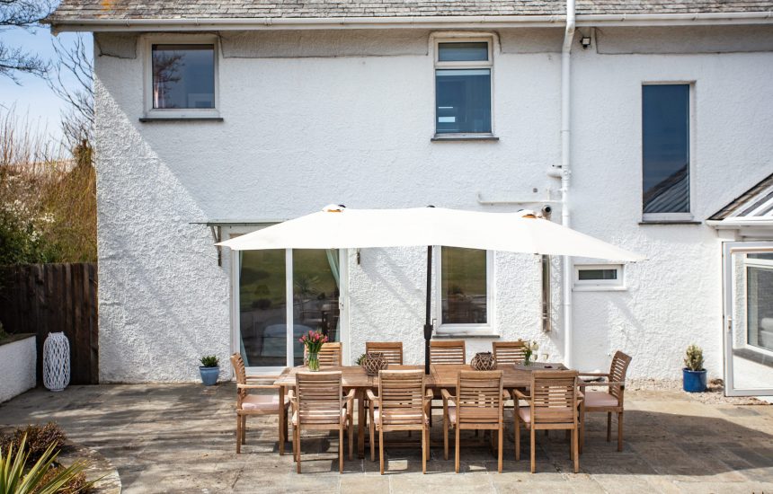 - Outside table, chairs and parasol.