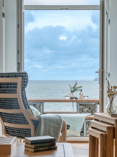 Nestled on the ground floor of this majestic Edwardian townhouse, Onan (one in Cornish), boasts stylish interiors, wooden floors and panoramic sea views. With nothing standing between you and the ocean, the sea view encompasses the rugged rock formations at Port Gaverne, all the way across to headland at Tintagel.