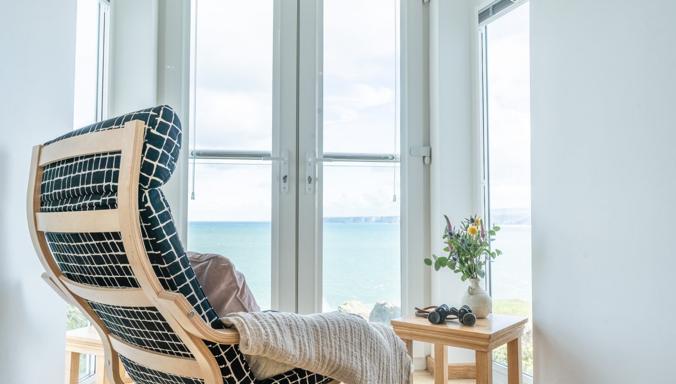 Nestled on the first floor of this majestic Edwardian townhouse, Peswar (four in Cornish), boasts stylish interiors, wooden floors and a Juliet balcony. With nothing standing between you and the ocean, the sea view encompasses the rugged rock formations at Port Gaverne, all the way across to headland at Tintagel.