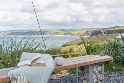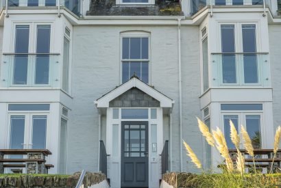 You may never want to tear yourself away from the view from the living room, but for al fresco dining, head to the bottom of the garden and discover a chunky wooden bench with decorative gabion pebble feet. Here you can breathe in the sea-salted air and take in the sea views from a different vantage point. A beautifully planted shingle bed in front of you spills with succulents, grasses and swaying pampas. Your very own clapperboard grey beach hut with pink door can be found up the path at the side of the building, providing safe storage for your boards and wetsuits.