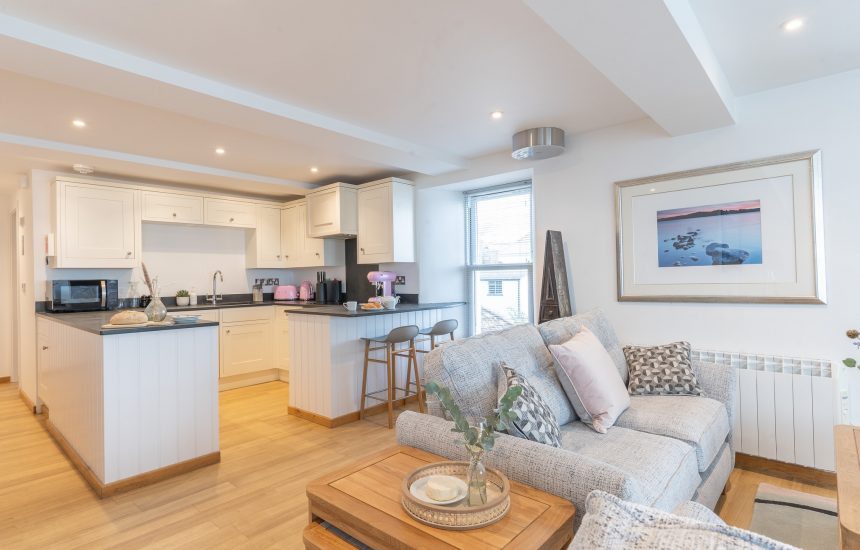Please note: Peswar can be let in conjunction with the other two-bedroom apartments in the No.7 building; Onan, Dew, Tri, as well as Pymp the three-bedroom penthouse apartment and three-bedroom cottage The Cornishman located behind (sleeping a total of 28).