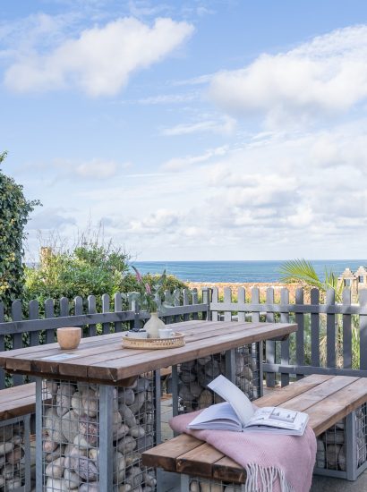 Two plush grey sofas offer a welcome refuge after a day exploring the dizzying heights of the coastal paths. With glimpses of the sparkling sea in the distance, unwind over a game of chess and plan the next day’s adventures.