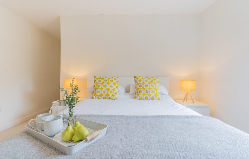 The Linhaye’s two spacious en-suite bedrooms offer sweet dreams all round. The master bedroom is softly carpeted with fresh white walls and punchy yellow accents. A second bedroom is stylishly finished with green and blue tones and beautiful wooden furniture. After a day walking the coast paths, come home and relax with a bubble bath in the large en suite.