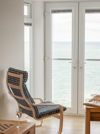 Nestled on the first floor of this majestic Edwardian townhouse, Tri (three in Cornish), boasts stylish interiors, wooden floors and a Juliet balcony. With nothing standing between you and the ocean, the sea view encompasses the rugged rock formations at Port Gaverne, all the way across to headland at Tintagel.