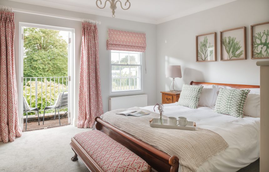 - Bedroom one (master) has a super-king bed, chest of drawers, ottoman, hairdryer, dressing table, balcony with views over the garden and en-suite with shower, hand basin and WC.