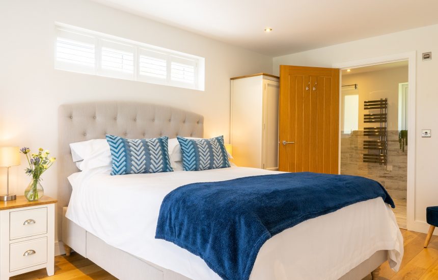 When eyelids grow heavy, retreat to one of three stylish bedrooms. The master bedroom, dressed in a symphony of white and navy-blue flourishes, offers a king-size bed and a beautiful slate-grey en-suite. A spa-like family bathroom sits conveniently between a mustard embellished twin room and silver-grey bunk room. Those that choose bedrooms two and three enjoy a peaceful outlook over the garden and rolling Cornish countryside.
