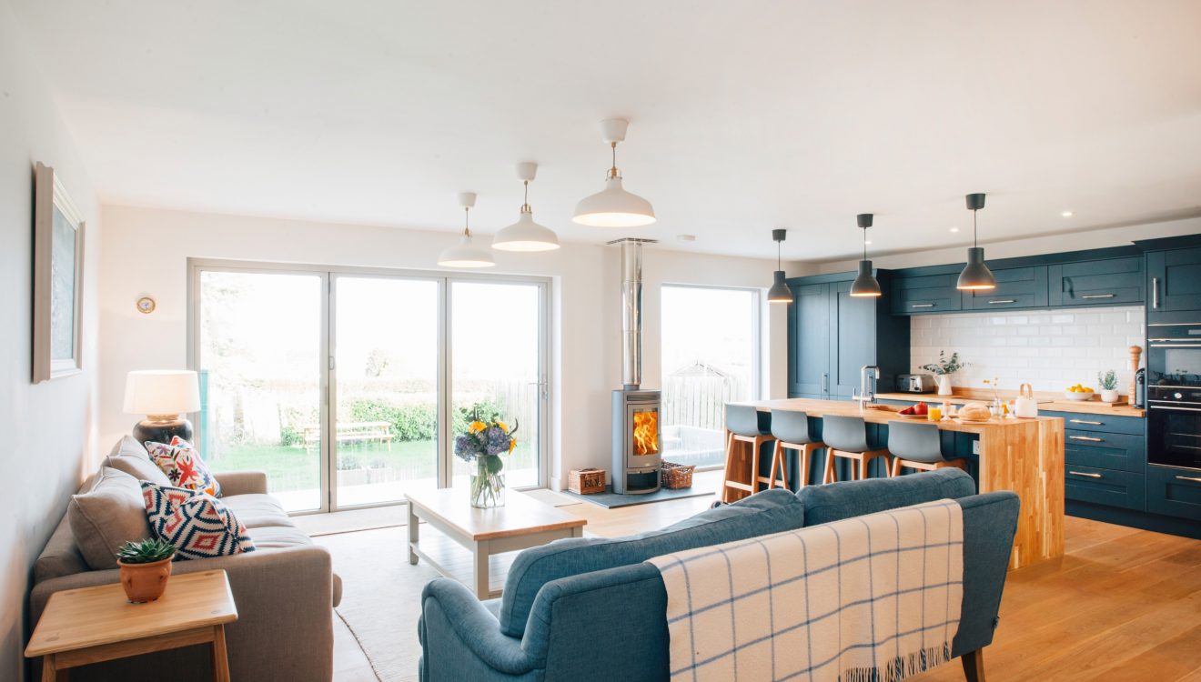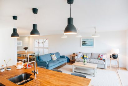 After a day of coastal adventures, shower off the sand and salt under the rainfall shower in the downstairs shower room. Unlace walking boots and enjoy some true rest and relaxation among the stylish social spaces. For cosy nights in, snuggle up together in the plush living room with a local tipple or two as the dog sleeps and the log burner crackles.
