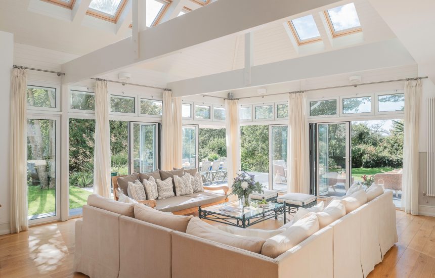 Buzza Vean benefits from vast, architect designed social spaces. The large kitchen is modern with a beautiful cream aga taking centre stage. A contemporary lounge with open gallery above offers the ideal reception area for guests, should you decide to host a dinner party. You can sink into the plush sofas and enjoy garden views from the open plan dining and family area. A TV room with its own home theatre system provides the perfect hideaway for children.