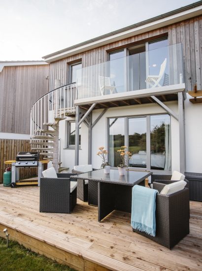 The outside area has been beautifully created with a wooden decking area and lawn overlooking pastures – the perfect location for an evening barbecue. Here you can recline on the comfy rattan seating and listen to the sounds of birds in the trees and the stream bubbling past as you enjoy al fresco dining. Fully enclosed and gated, it's also a fun and secure place for children to play.