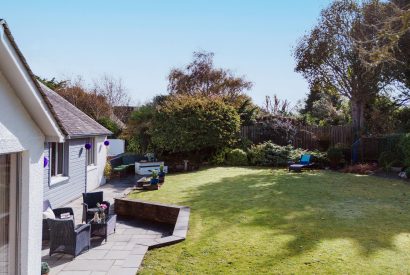 Parking for Penolver Lodge is directly outside the property on a gravel surface. There is one step from the parking area into the bungalow. There is a small threshold between bedroom three and the wet room. Access to the garden is down two steps from the dining room, or via two steps from the master bedroom. The garden is spread across two levels.