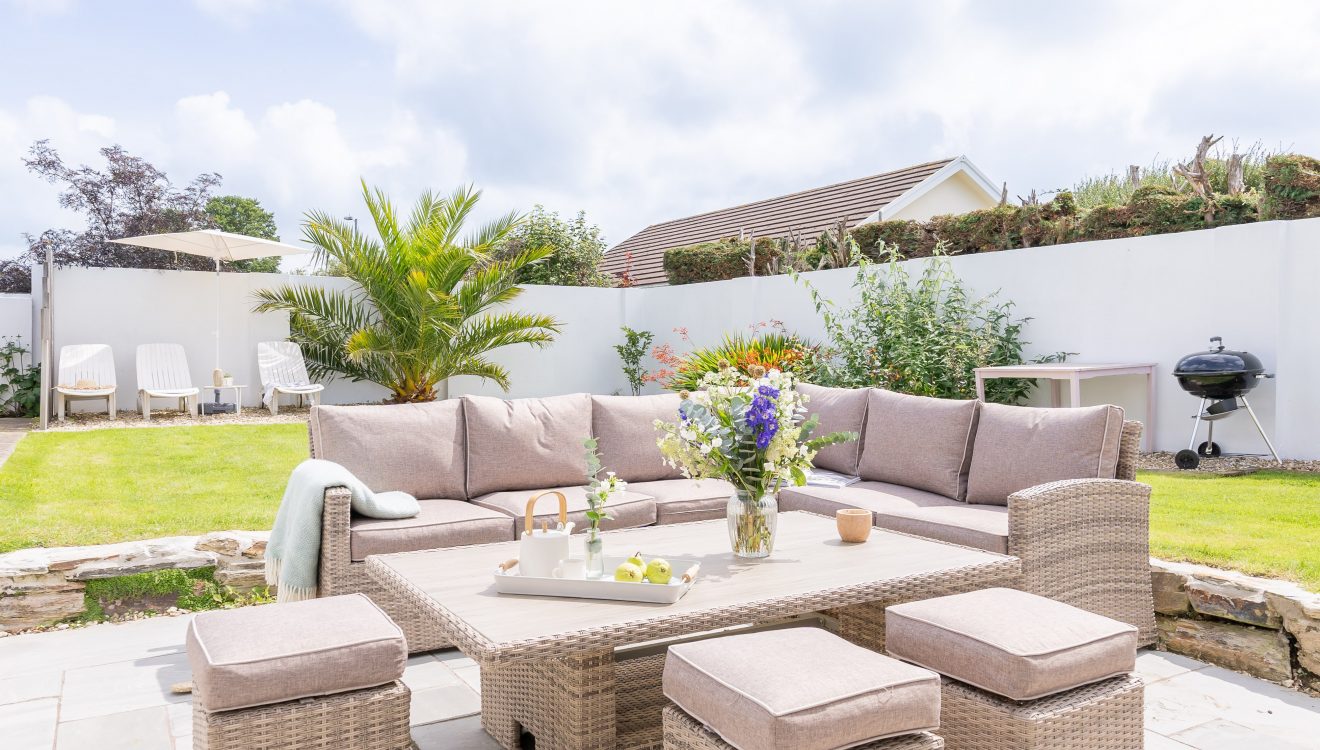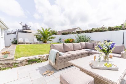 After a day on the beach or in the water, the sheltered rear garden provides the perfect spot to soak up the Cornish sunshine. Here you can recline on the comfy rattan seating and listen to the sound of the birds in the palm tree above. Fully enclosed and gated, it’s also a fun and secure place for children to play.
