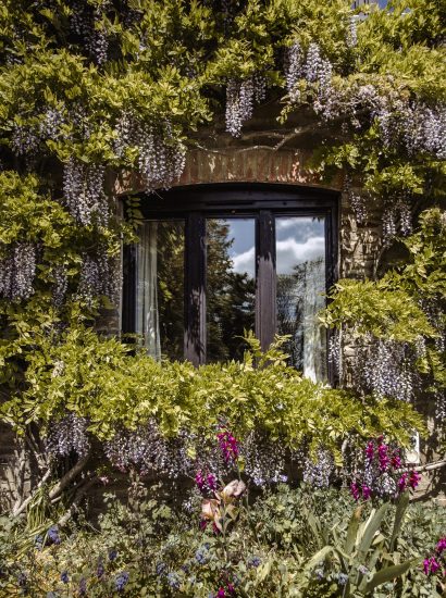 The sound of birds and the leaves blowing softly in the breeze forms your holiday soundtrack. Fragrant wisteria with soft purple blooms wraps around the front of the house, while a stone sun terrace offers a built-in barbecue and breathtaking views across the countryside.