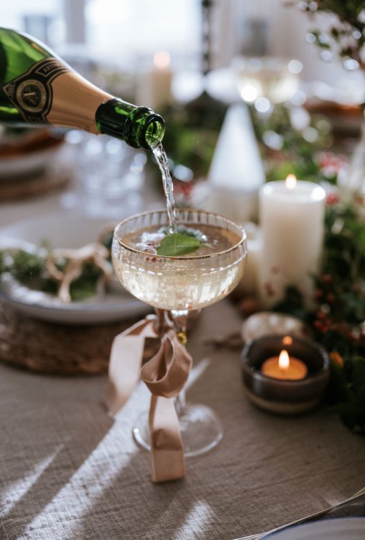 When it comes to the dinner table, Nicola’s advice is simple: look to nature. Foraging in your garden or local woodland is the easiest way to create a charming festive centrepiece. Twist together holly and ivy to run down the centre of the table, place a few stems in a glass vase to add height and texture and finish with a scattering of conkers from your winter walks for a touch of seasonal warmth.