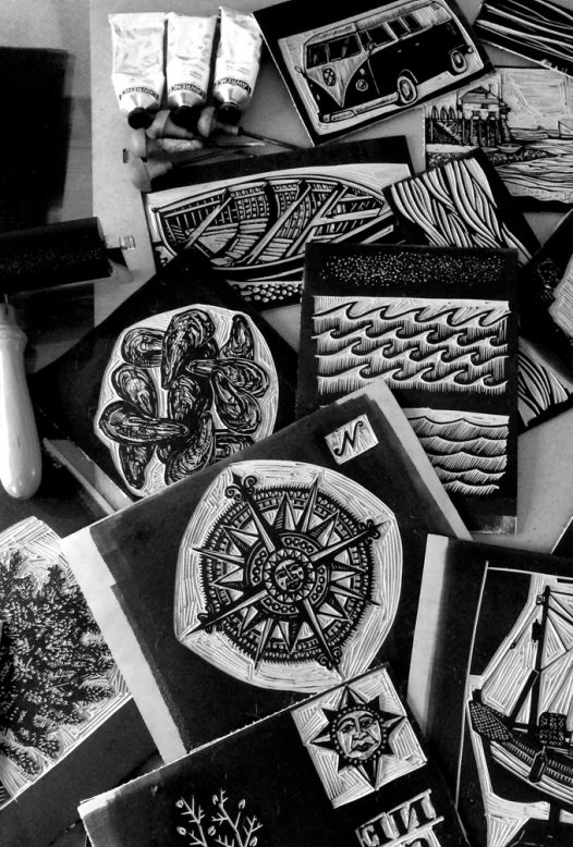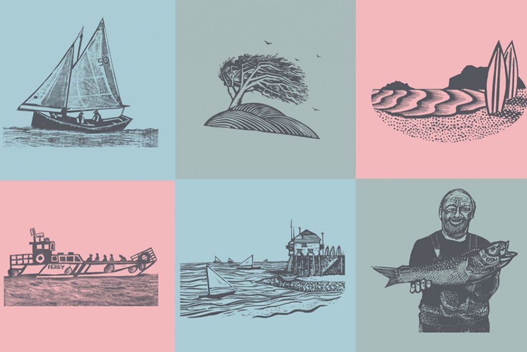 The Latitude50 marketing is peppered with illustrations capturing our favourite local landmarks and scenes from the iconic Brea Hill and the St Enodoc Church to Rock Sailing Club and Pentire headland. These are created using linocuts by the rather talented Falmouth University graduate Edward Farley.