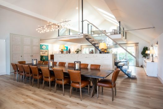 Carn Mar is a seriously special holiday home set above Polzeath Beach. Sleeping 14, this luxurious and spacious property has world-class interiors, panoramic sea views and direct beach access. Carn Mar boasts six bedrooms including a double bunk room and vast social spaces. Designed with its amazing outlook in mind, Carn Mar enjoys a dreamy backdrop of sea and sand from almost every vantage point in the house. Gather around the large fire pit at the bottom of the garden, toast marshmallows and watch the sun go down over the water.