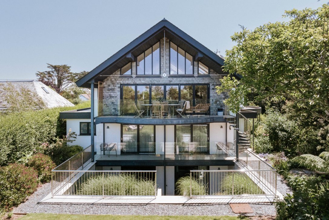 Greenaway Reach is a utopia of modern architecture and landscaped gardens overlooking the unspoilt Greenaway cove with direct access to the coastal path that hugs the clifftop below. Carved into the cliffside, this impressive three storey retreat set in two and a half acres of rolling green, landscaped gardens that melt into the gorse-lined scrub lining the coastal path below. Greenaway Reach can sleep up to twelve adults and two children (bedroom three is only suitable for children due to low ceilings) and welcomes two dogs (more by negotiation).
