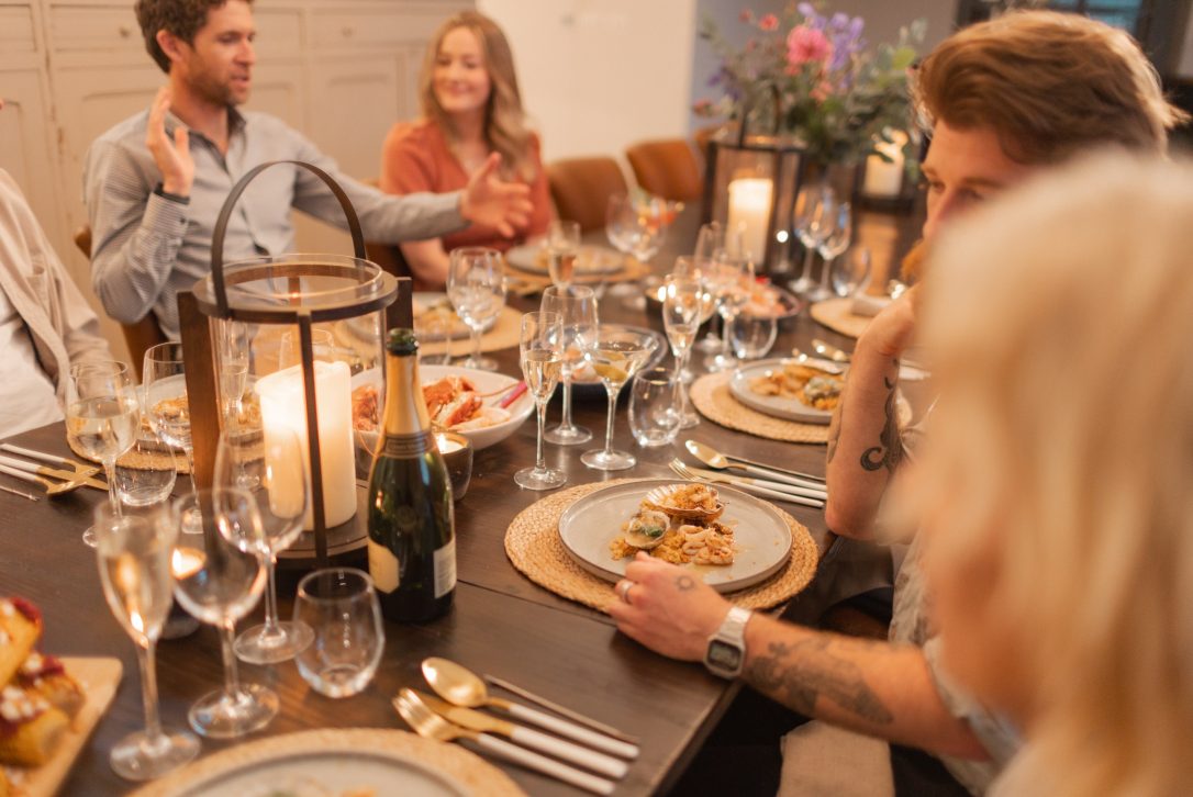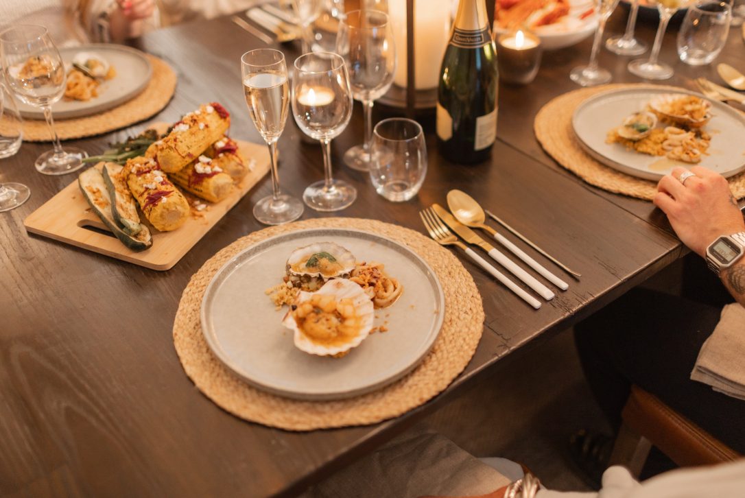 Lights dimmed and corks popped. We settled down to a delicious feast at the ultimate property for a celebration, Little Moiety in Rock with Cam, founder of Lobster Box.