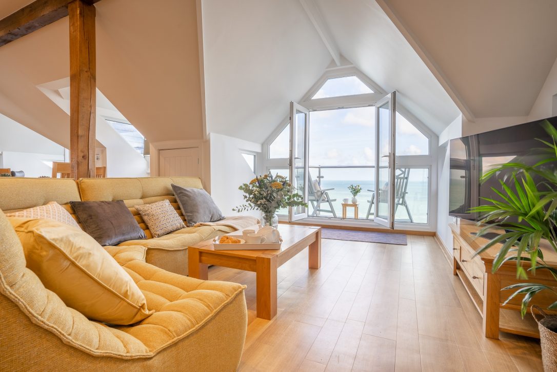 Puffins welcomes you with light-filled interiors and plenty of room for socialising, whether you're setting up for a cosy evening in the TV room or hosting an al fresco dinner party on the balcony. With its sweeping lawn and uninterrupted views of Brea Hill, Puffins is the perfect retreat to enjoy with your nearest and dearest.